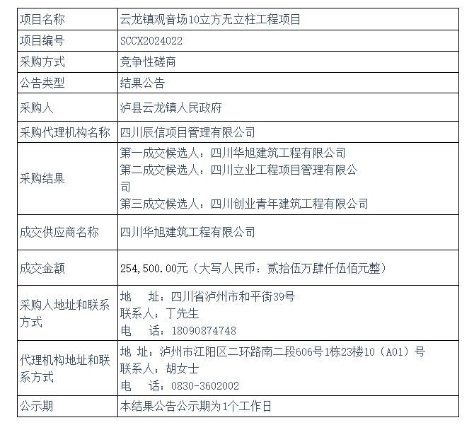 云龙镇观音场10立方无立柱工程项目 竞争性磋商结果公告