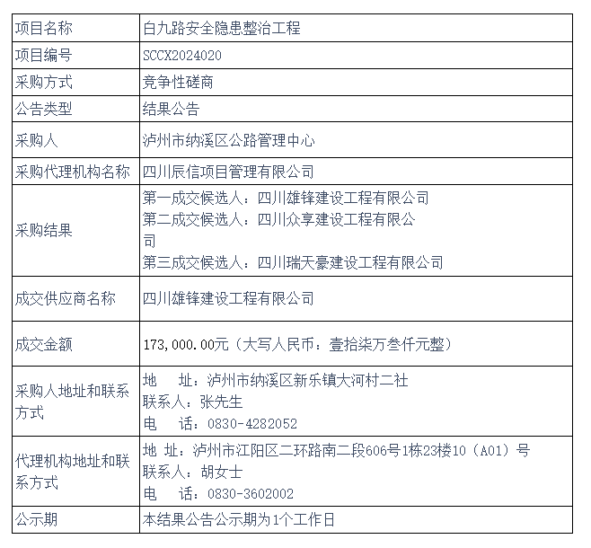 白九路安全隐患整治工程 竞争性磋商结果公告