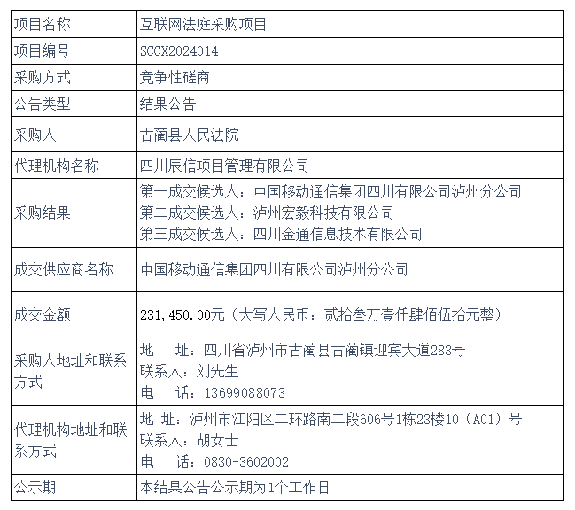 互联网法庭采购项目 竞争性磋商结果公告