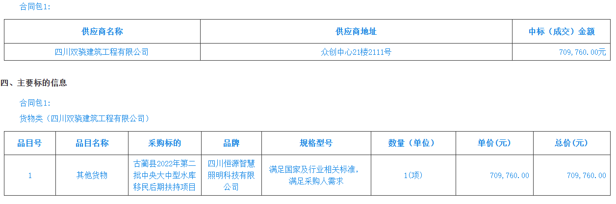 中标(成交)供应商名称:四川双骁建筑工程有限公司 联系人:林朝芳 联系方式:17360606890