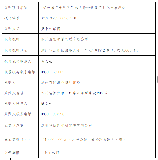 泸州市“十五五”加快推进新型工业化发展规划结果公告