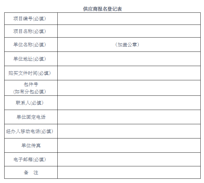 邮件报名主题:项目名称+项目编号+公司名称;请投标人将报名登记表(可在公告网页自行下载),营业执照复印件加盖企业公章扫描发送至网上报名邮箱。网上报名邮箱sccx202207@163.com。