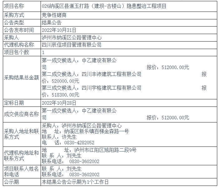 纳溪区县道玉打路(建坝-古楼山)隐患整治工程项目竞争性磋商结果公告