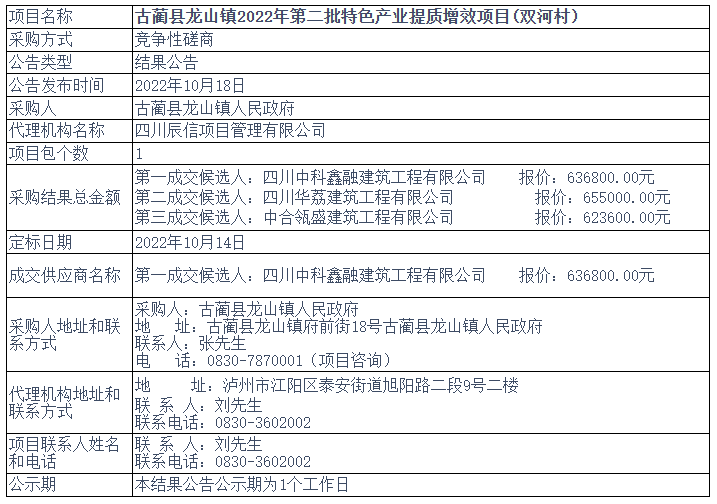 古蔺县龙山镇2022年第二批特色产业提质增效项目(双河村)