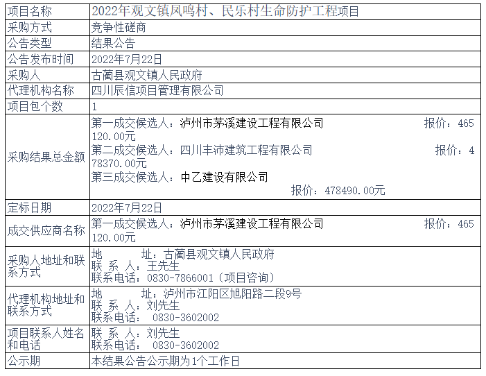 2022年观文镇凤鸣村、民乐村生命防护工程项目竞争性磋商结果公告